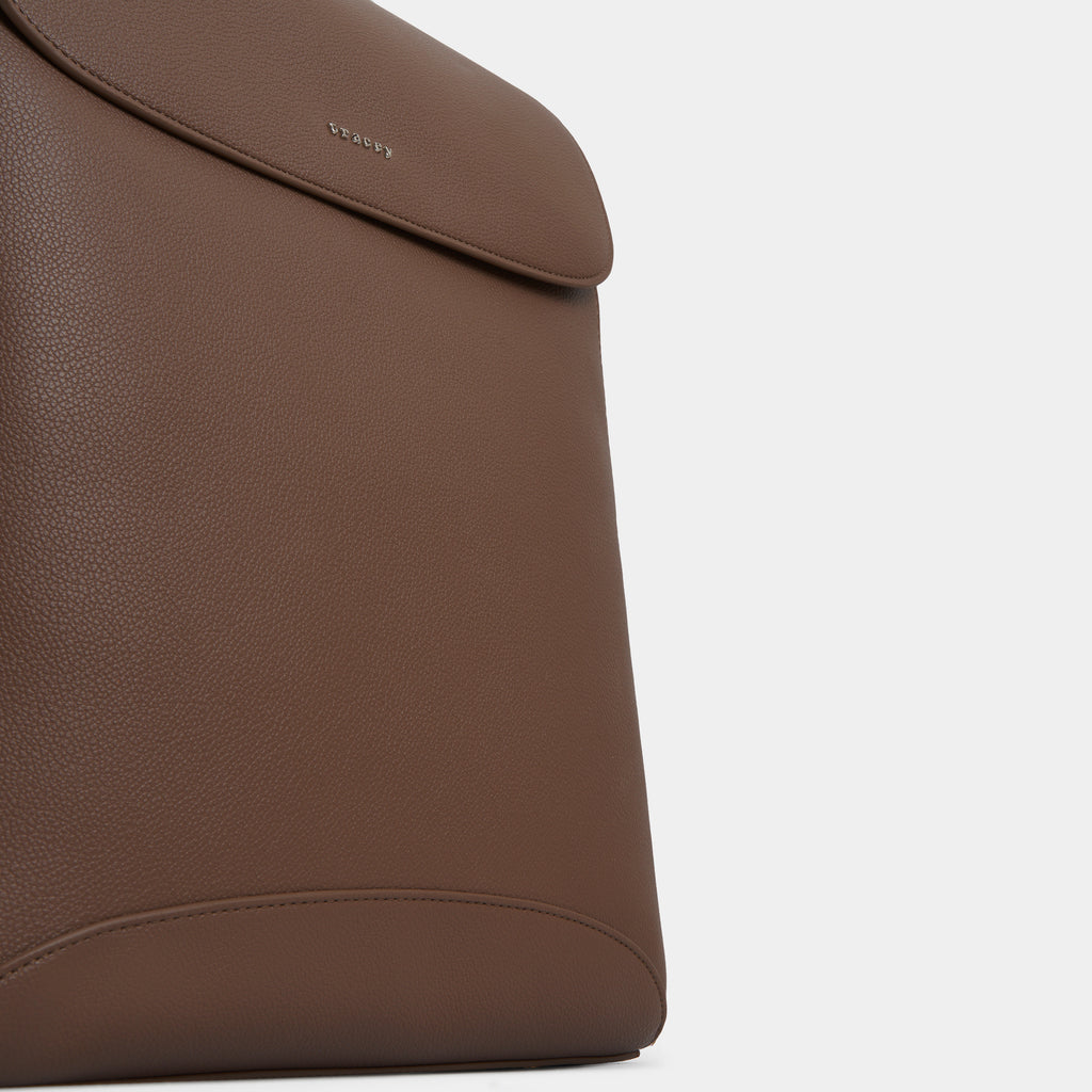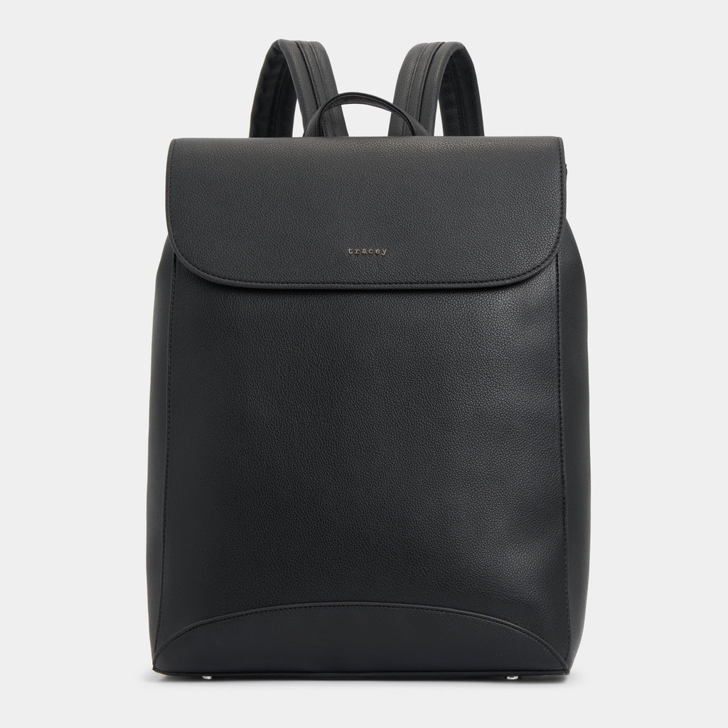 Elevate your daily carry with the Tracey Structured Flap Backpack, made with recycled PU leather to support your sustainable lifestyle without compromising on design. Its clean, geometric silhouette features a modern flap closure with no visible front pockets — for a sleek, minimal look that transitions effortlessly between casual and smart settings.